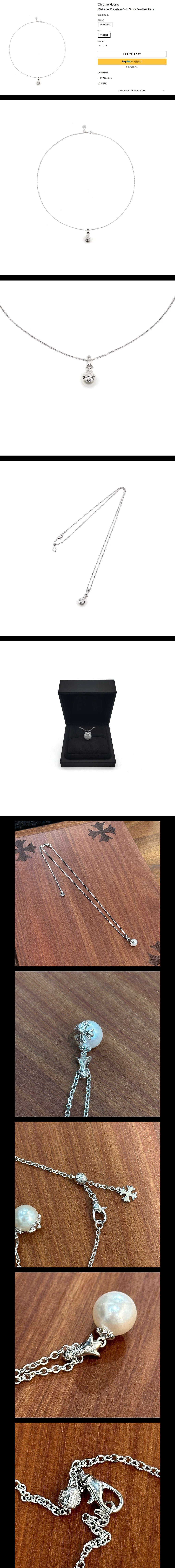 미키모토 18K 화이트 골드 크로스 진주 네크리스