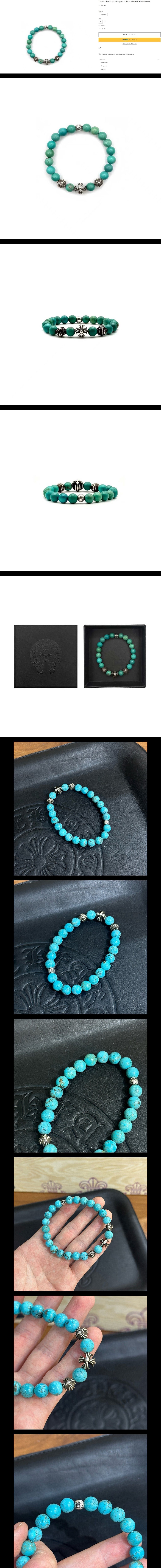 8mm 터콰이즈 4피스 실버 플러스 볼 비즈 브레이슬릿