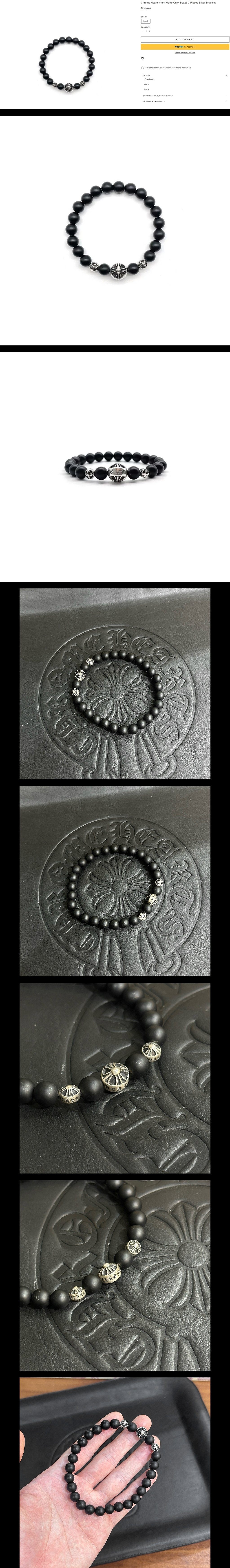 8mm 매트 오닉스 비즈 3피스 실버 브레이슬릿