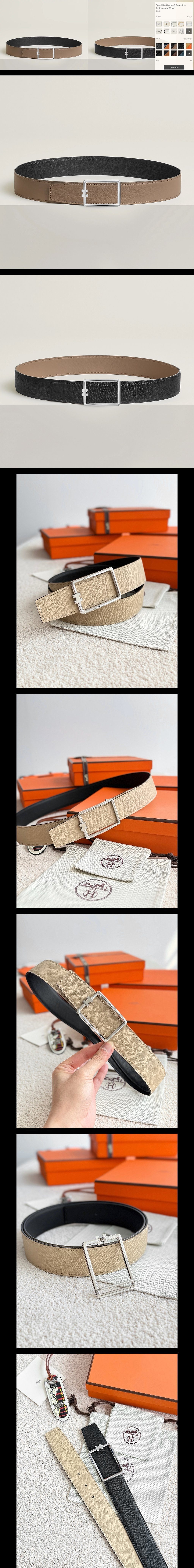튜브 H 벨트 버클 리버시블 가죽 스트랩 38mm