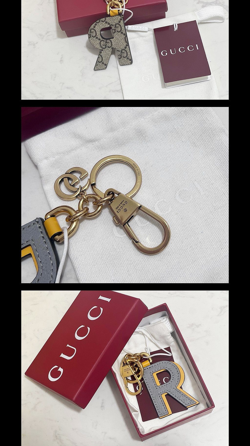 가죽 R 로고 키 체인