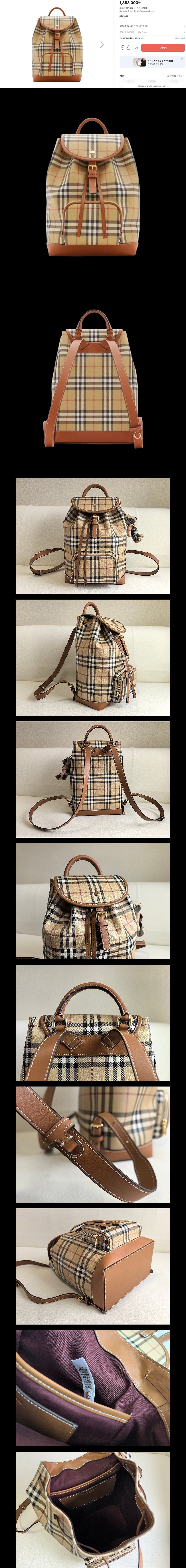 베이지 체크 캔버스 백팩