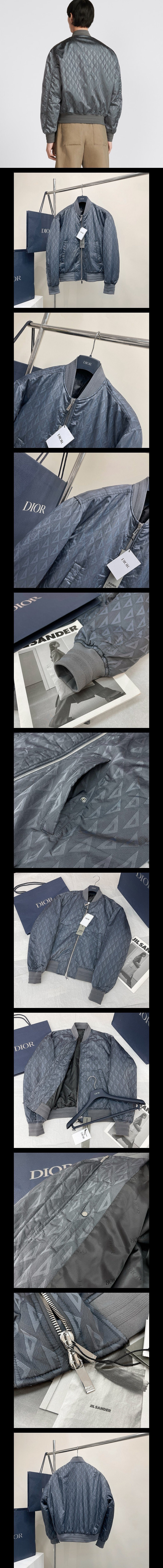 자카드 테크니컬 패브릭 CD 다이아몬드 패턴 지퍼 보머 재킷
