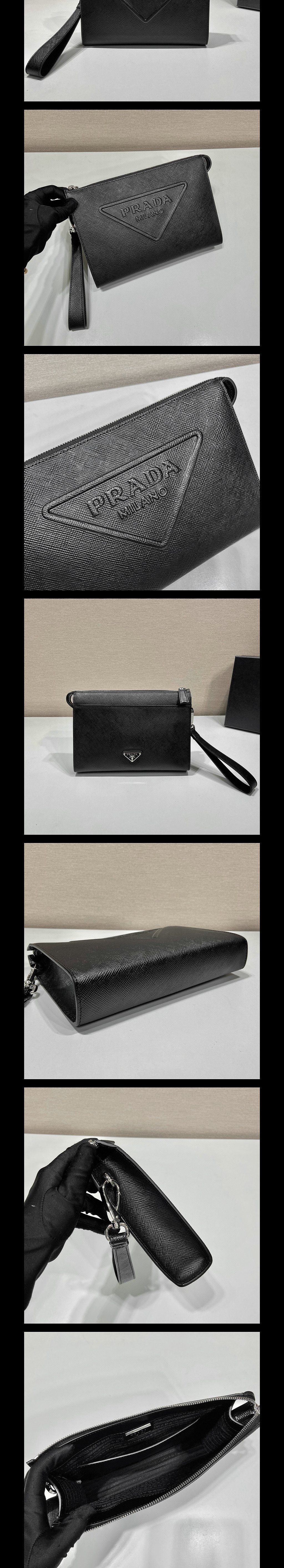 사피아노 레더 엠보스 로고 파우치