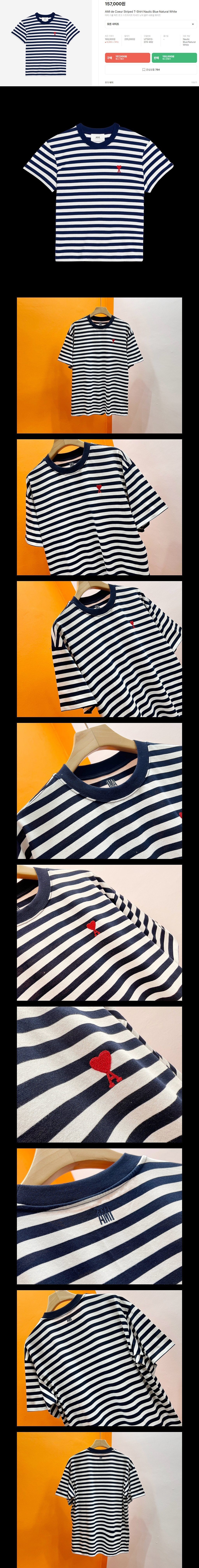 스몰 하트 로고 스트라이프 티셔츠
