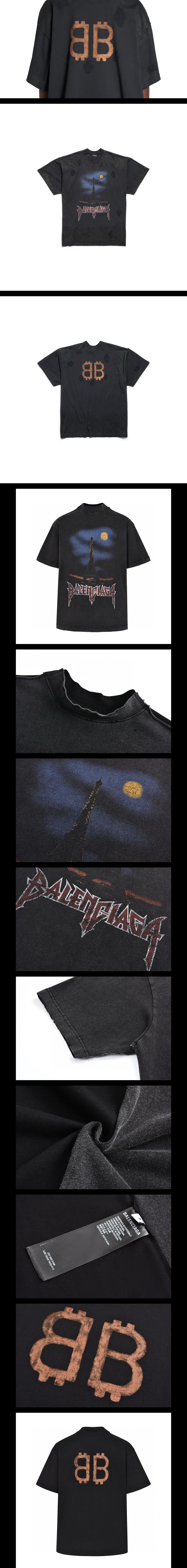 파리 문 더블 프론트 코튼 티셔츠