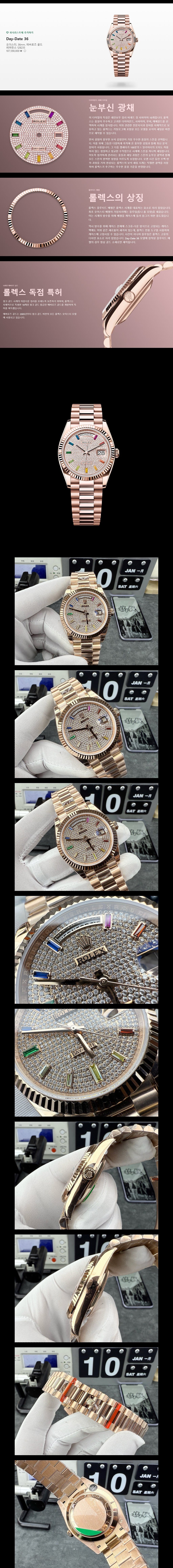 데이데이트 (에버로즈 골드 / 다이아몬드 파베 다이얼 & 레인보우 인덱스) 36mm