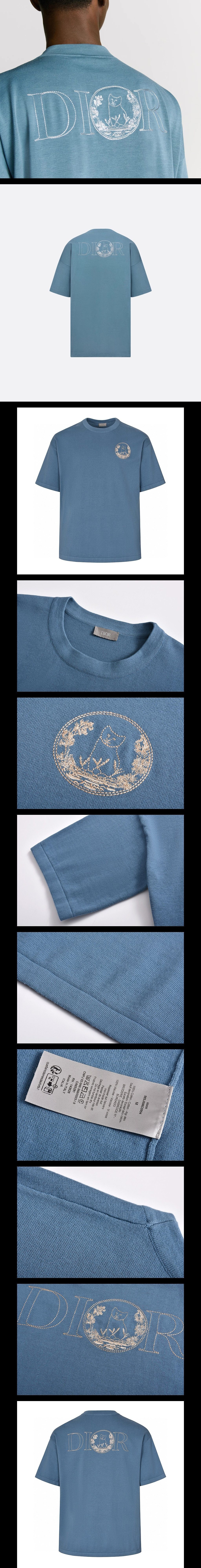 블루 코튼 실크 저지 니트 티셔츠