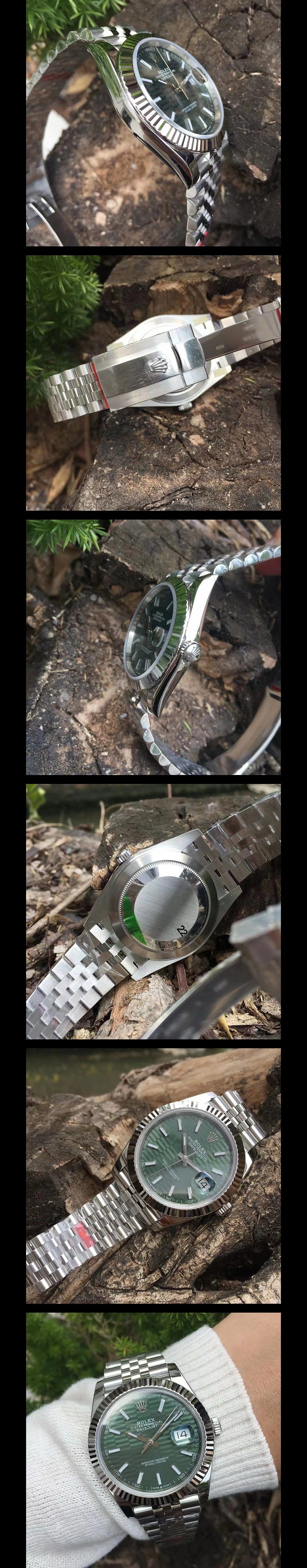 데이트저스트 41 플루티드 모티프 민트 그린
