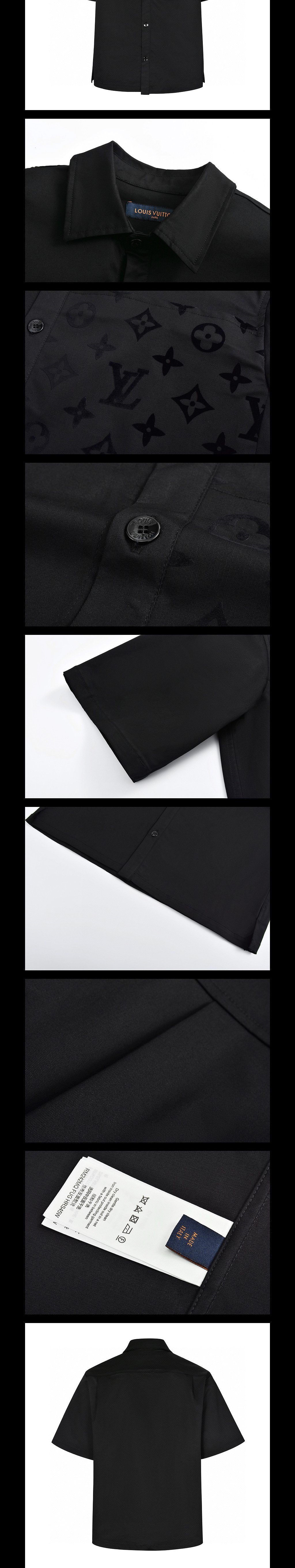 플록드 숏 슬리브 코튼 셔츠