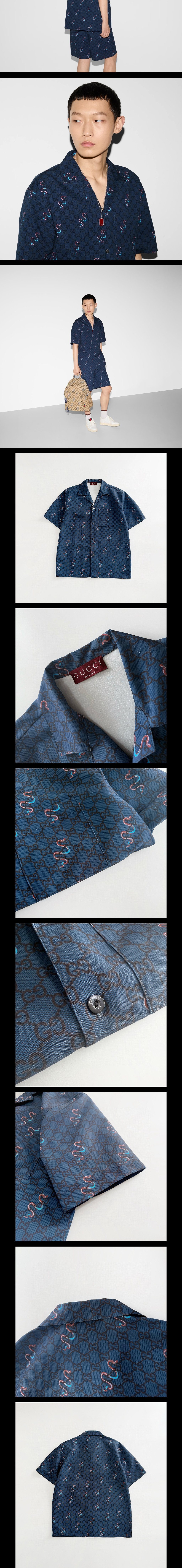 스네이크 프린트 립스탑 코튼 셔츠